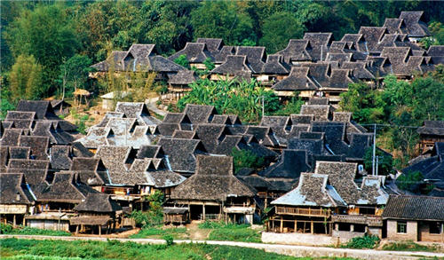 Buddhist culture deeply influences the distribution and folk house forms of the Water Dai people's villages and stockaded villages. The Water Dai villages and stockaded villages, usually distributed by the hilly country near the paddy field or by the side of mountains, are made up of folk houses and Buddhist temples. The local people believe in Buddhism, so folk houses cannot be located in the neighborhood, especially the opposite side of Buddhist temples. What’s more, the height of floor of folk houses cannot surpass the plane of seat stand of Buddha statue.