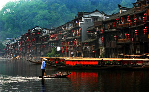 Then, stop by at Sand-rock Painting Research Institution and transfer to Fenghuang Ancient Town (4 hours). Upon arrival, enjoy a night boat trip on Tuo River.