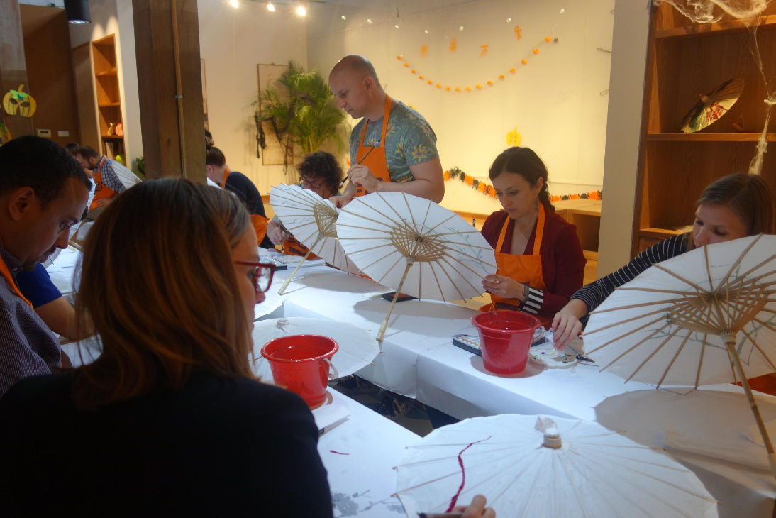 After the Grand Canal museum, we will bring you to another museum, the workmanship and demonstrations pavilion. Here you have a chance to use your imagination to draw a picture on an umbrella.