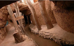 The Karez System (UNESCO), an underground irrigation system, is considered to be one of the three great ancient projects of China. Its main function is to deliver water from nearby snow capped mountains to Turpan and its agricultural fields.